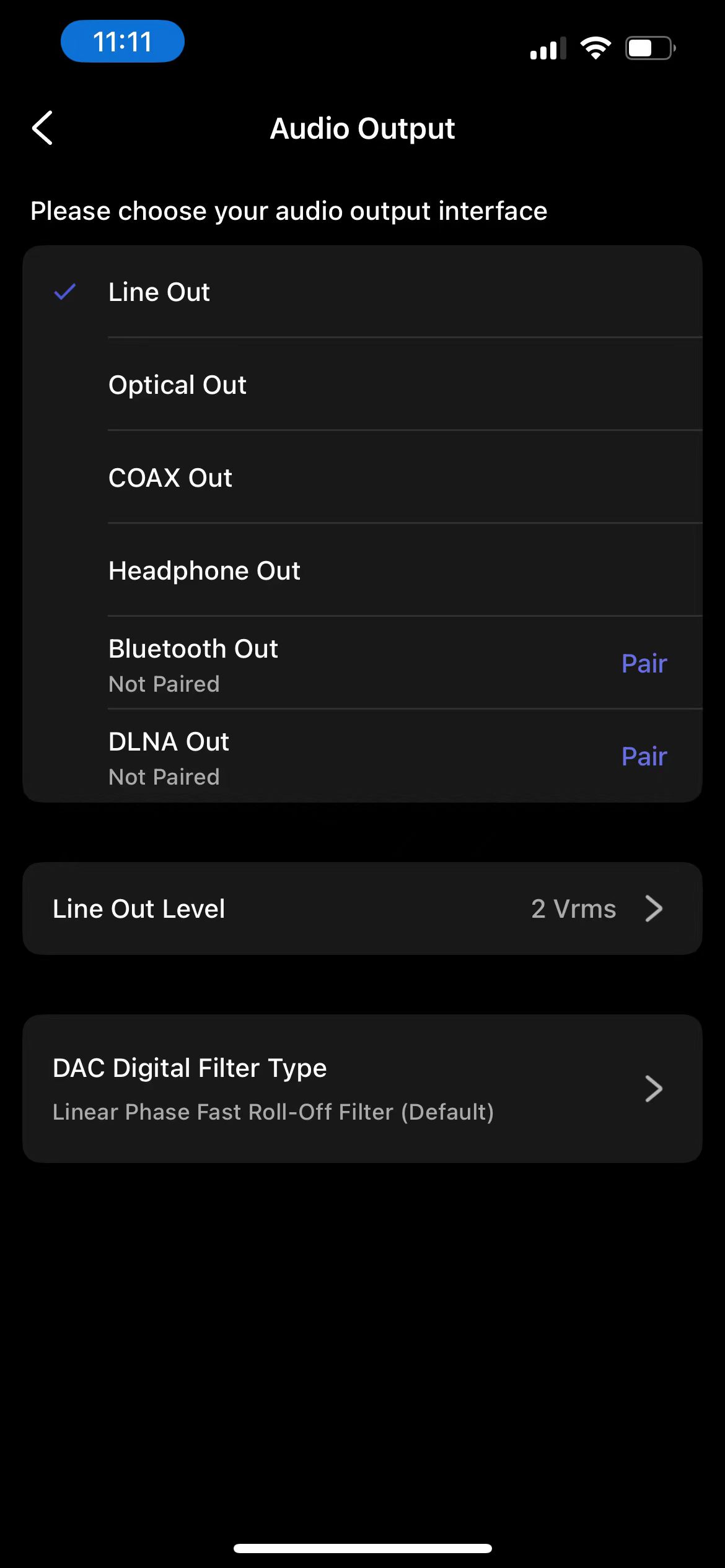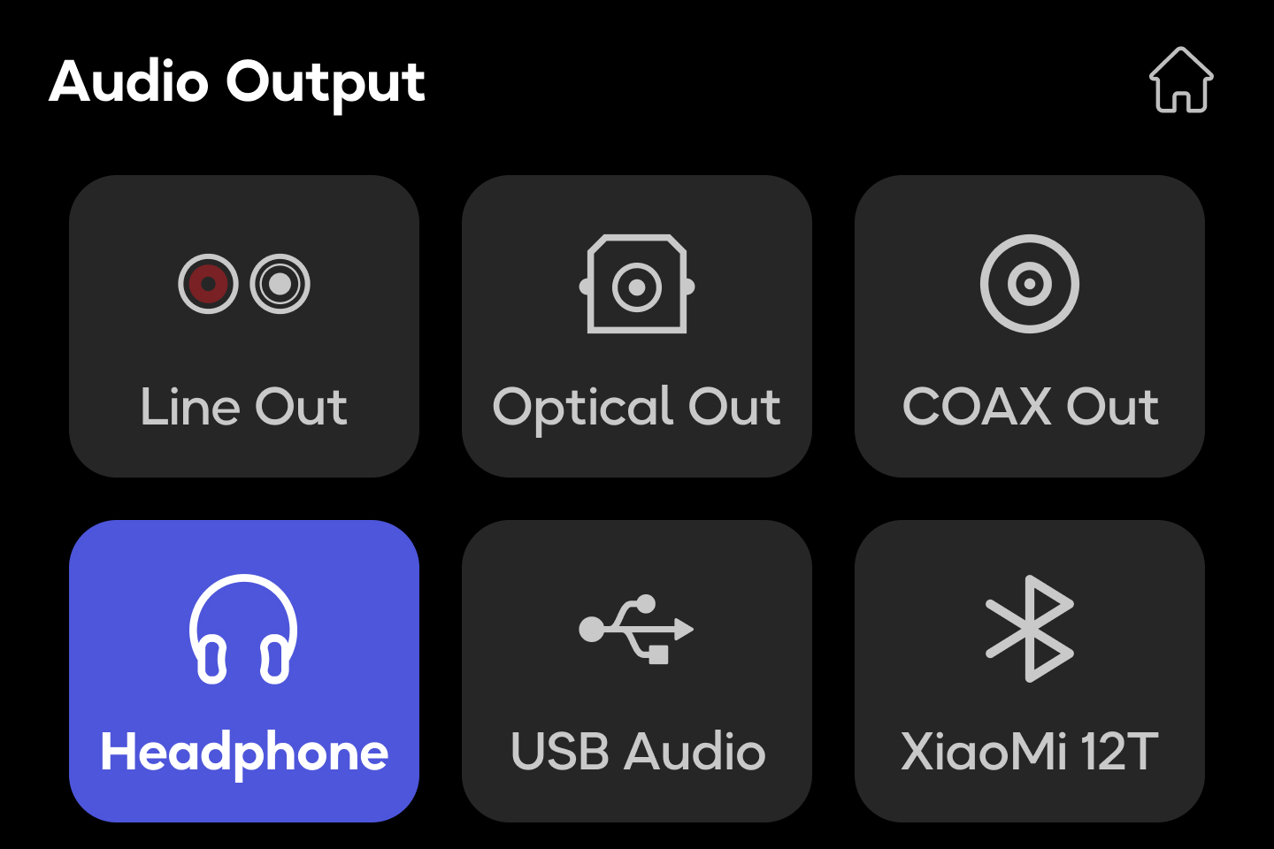 You can choose an audio output via the WiiM Home app or the built-in screen (if available).