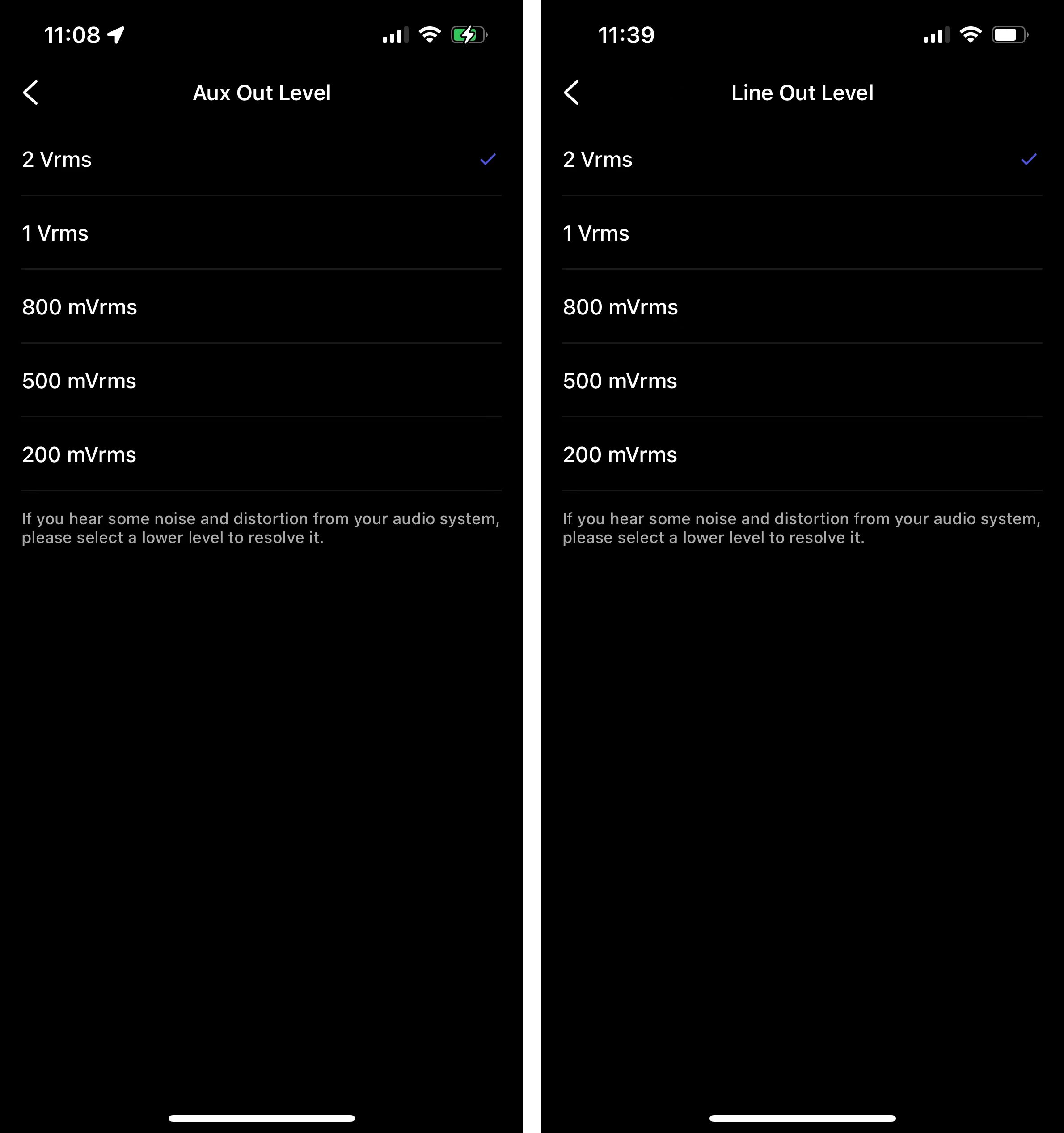 - Choose a lower level. The default level is 2 Vrms.
