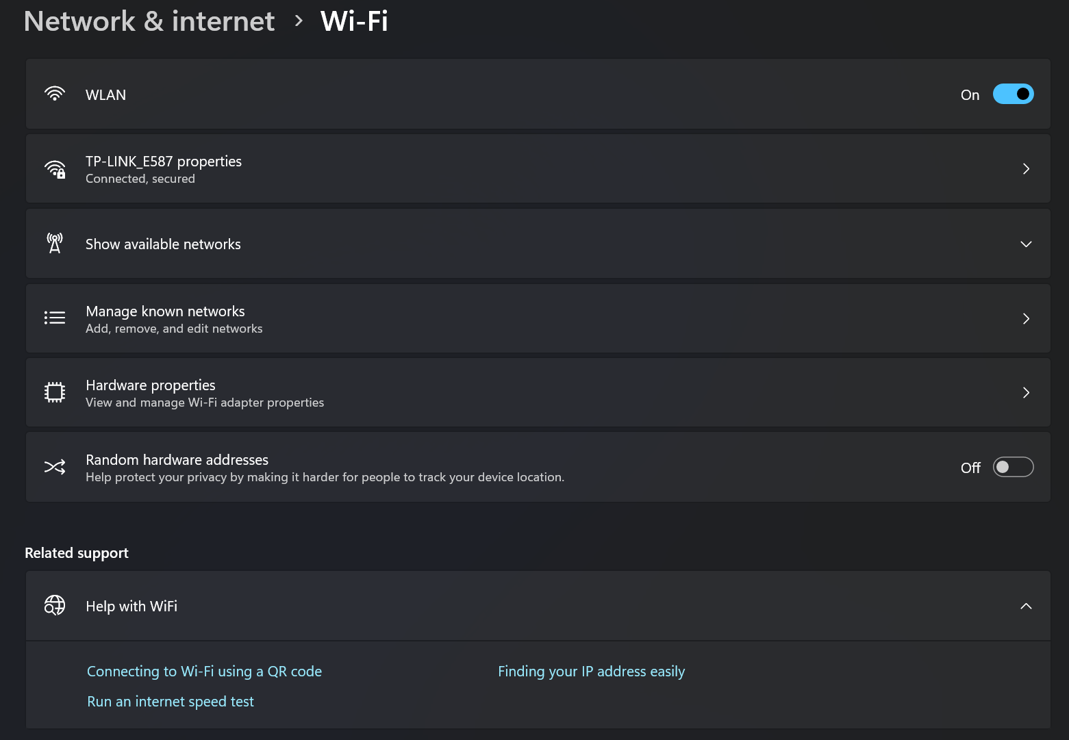 - Click the name of your connected WiFi network to view its properties.