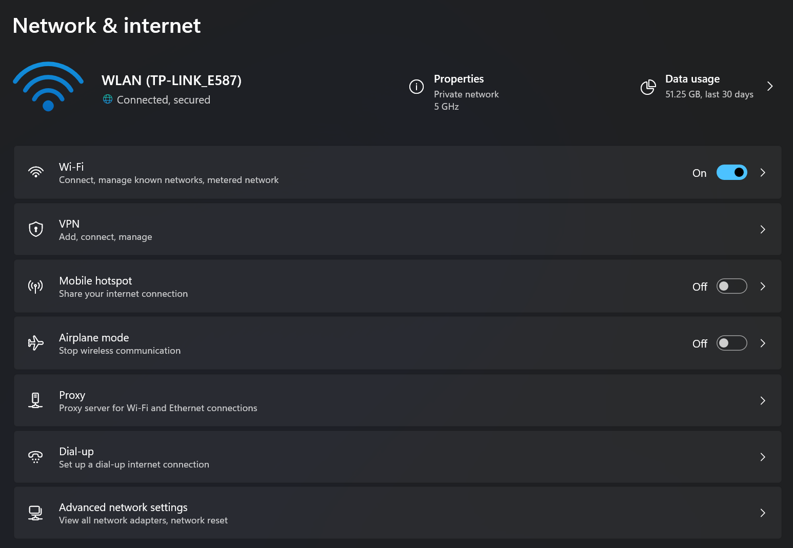 in the lower-right corner of the taskbar and select Network & internet settings to open the network settings window. - In the network settings page, click Wi-Fi.