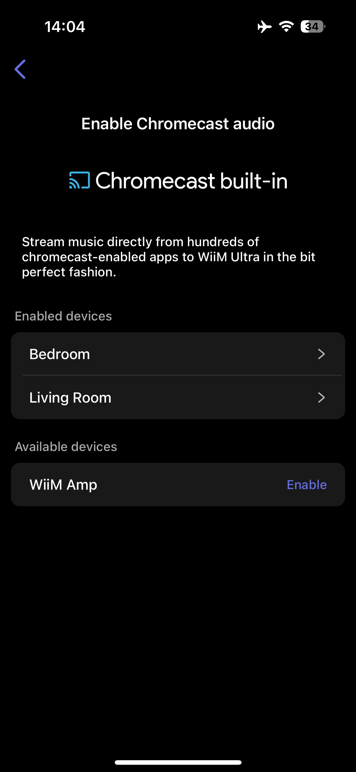 - Tap Enable to turn on Google Cast audio on your WiiM device.