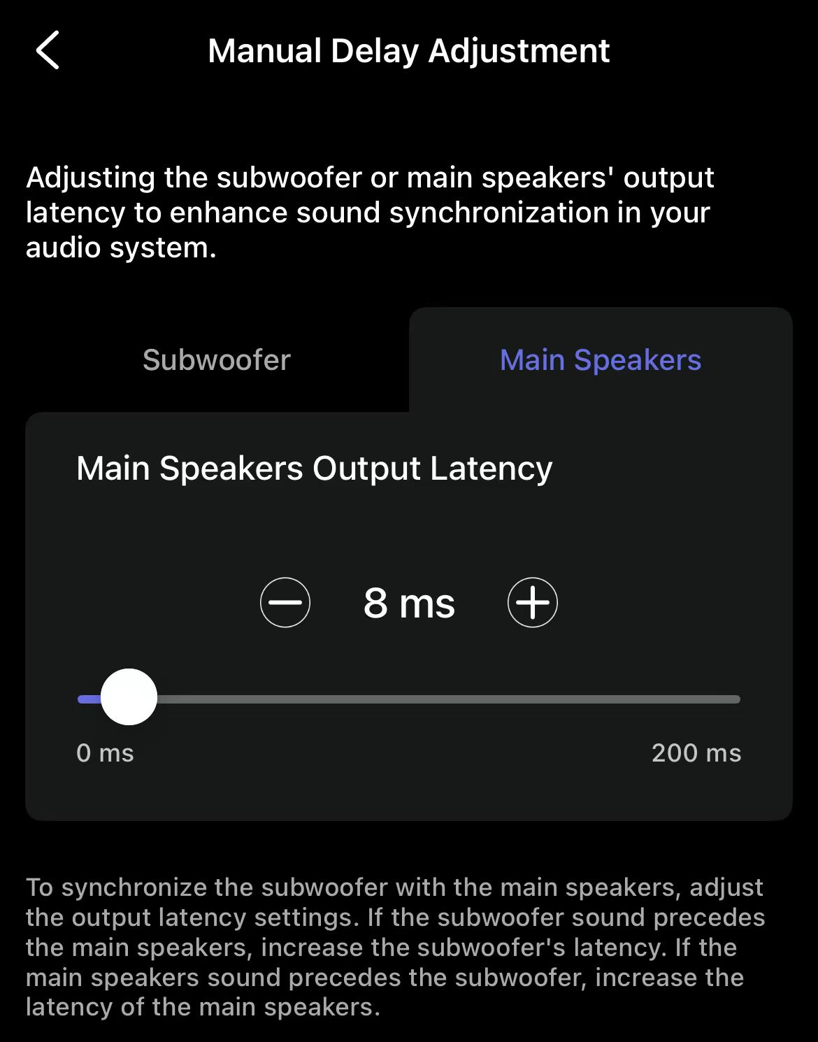 - Adjust Latency: Use the slider or +/- buttons to set the delay (0 ms to 200 ms).