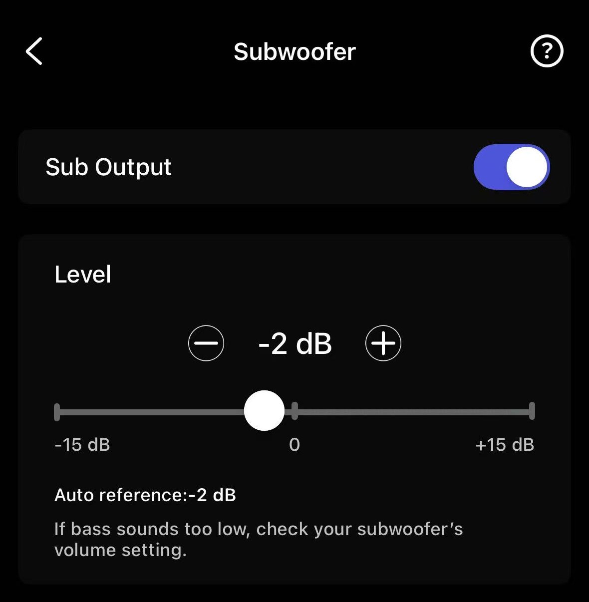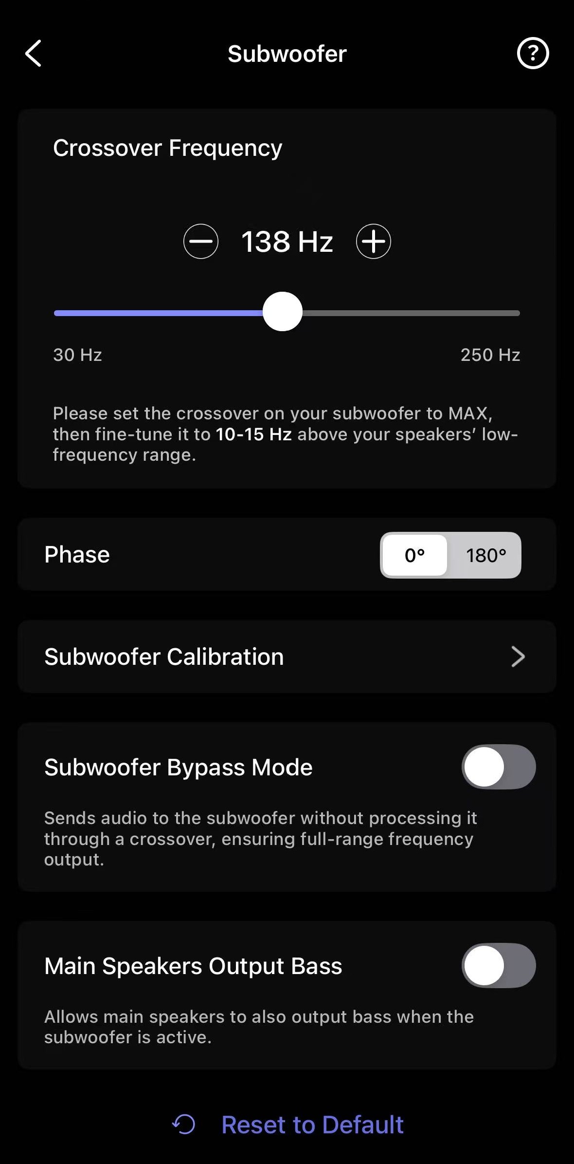 - Go to the Devices tab > Device Settings > Sub Out > Subwoofer Calibration.