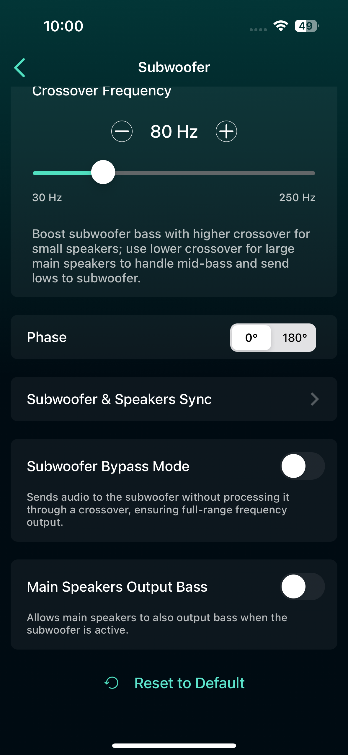 for your WiiM device. - Navigate to Subwoofer > Subwoofer & Speaker Sync.