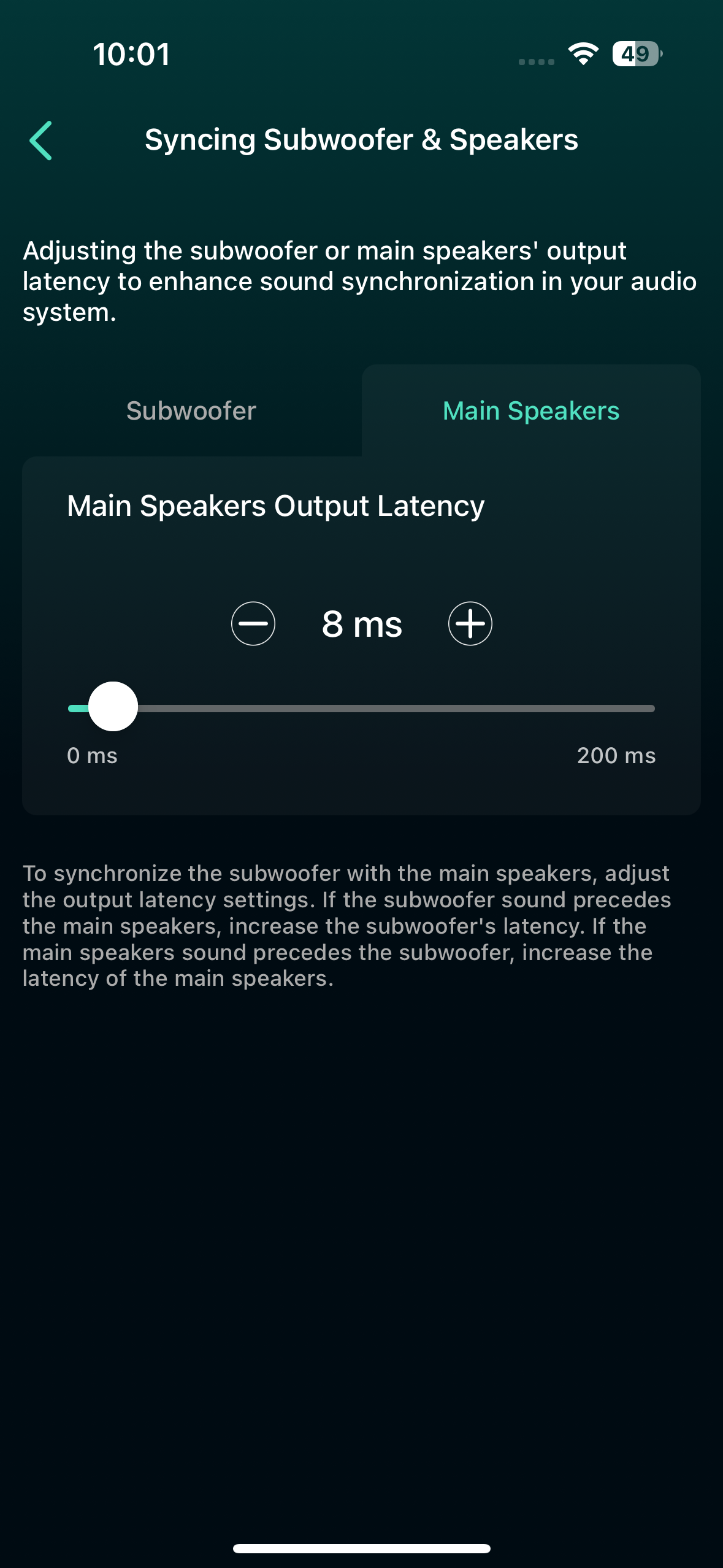 - Adjust the output latency settings for your subwoofer and the main speakers.