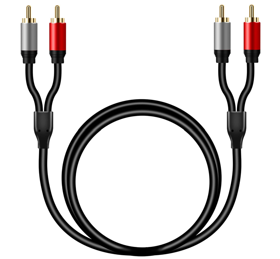 - Prepare a turntable RCA cable to connect your turntable to the WiiM Ultra. One end of the cable should have two RCA connectors to connect the WiiM Ultra, while the other end should match the input on your turntable. See typical cables below.
