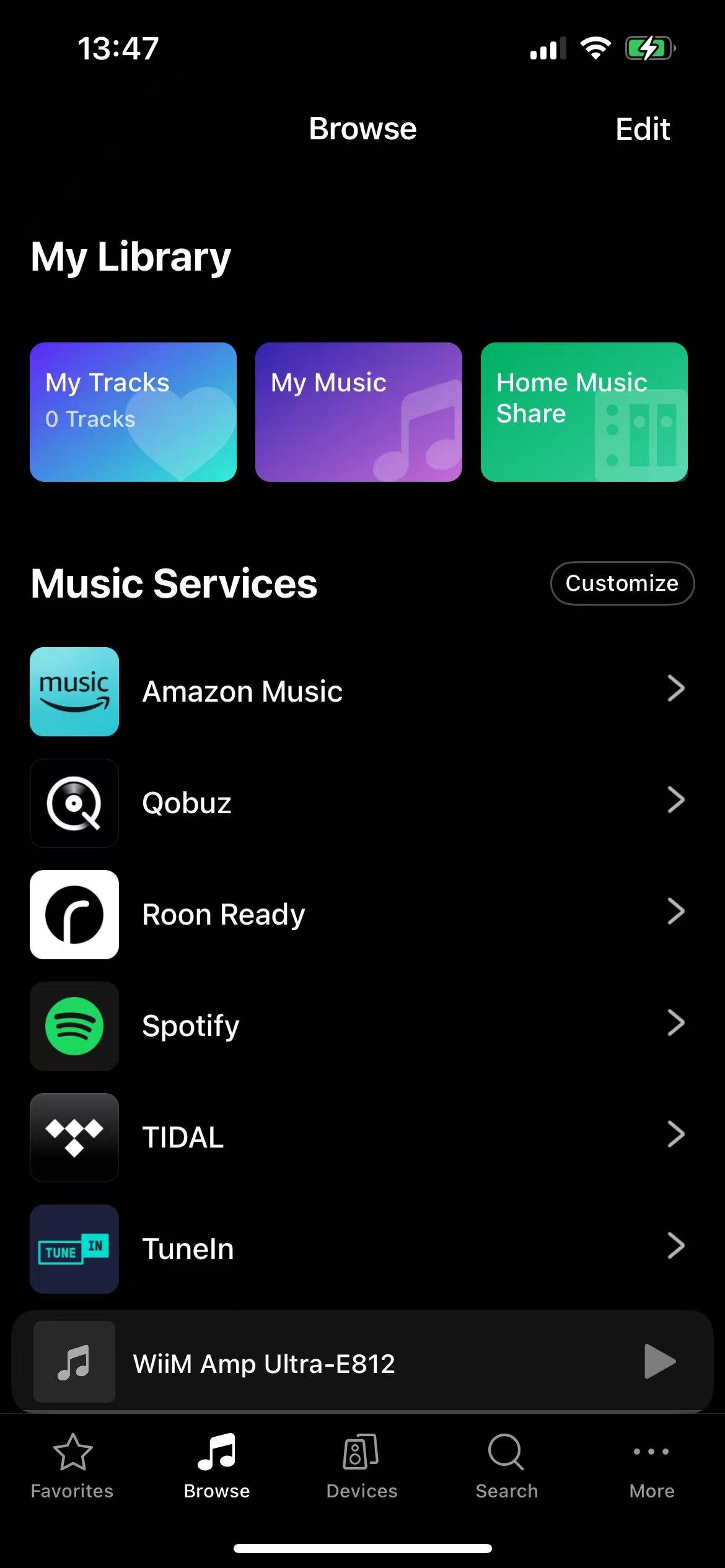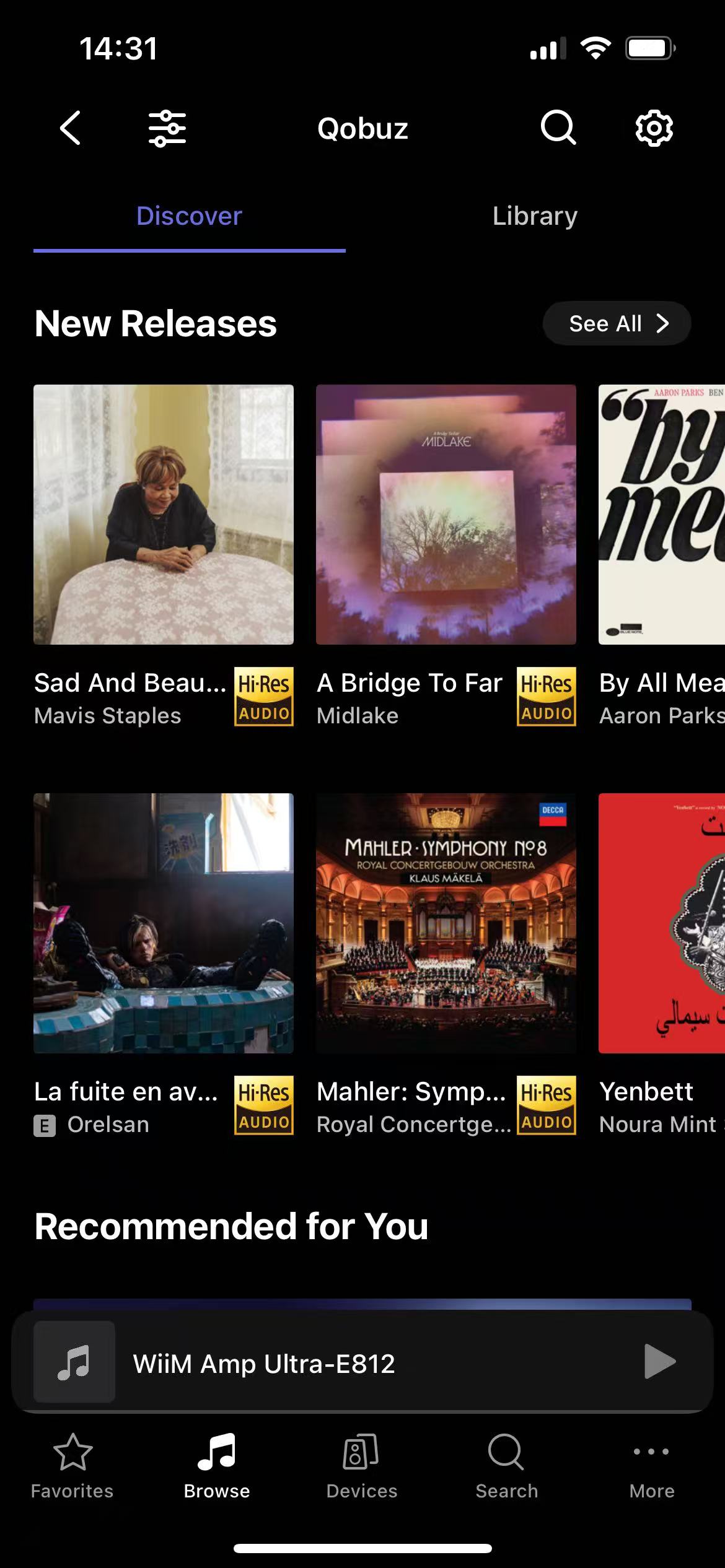 The WiiM Home app integrates the Qobuz music service, allowing you to stream music directly to your WiiM device without opening the standalone Qobuz app.
