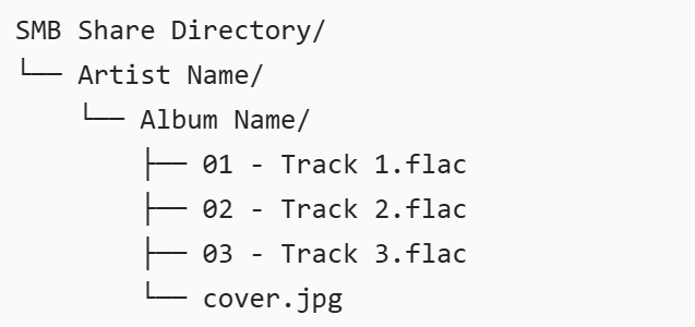 The SMB Music Library feature now supports custom album artwork, which appears in the WiiM Home app when you browse or play music in an album.