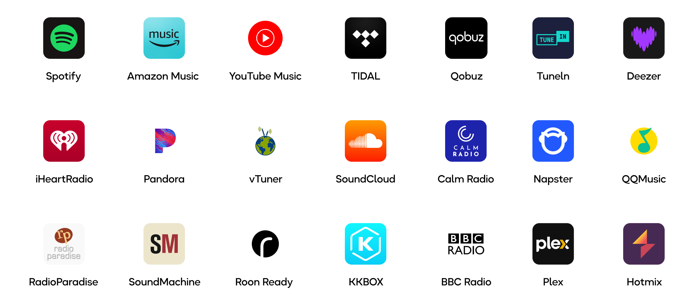Scroll to the Music Services section to find your preferred service.