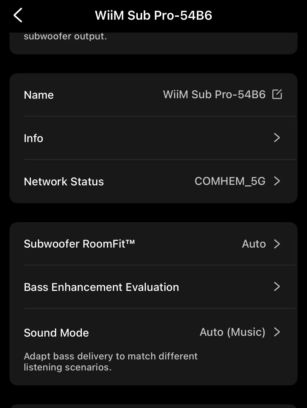 Once your WiiM Sub Pro is paired with a WiiM device, you can configure your WiiM Sub Pro's Sound Mode in the WiiM Home app.