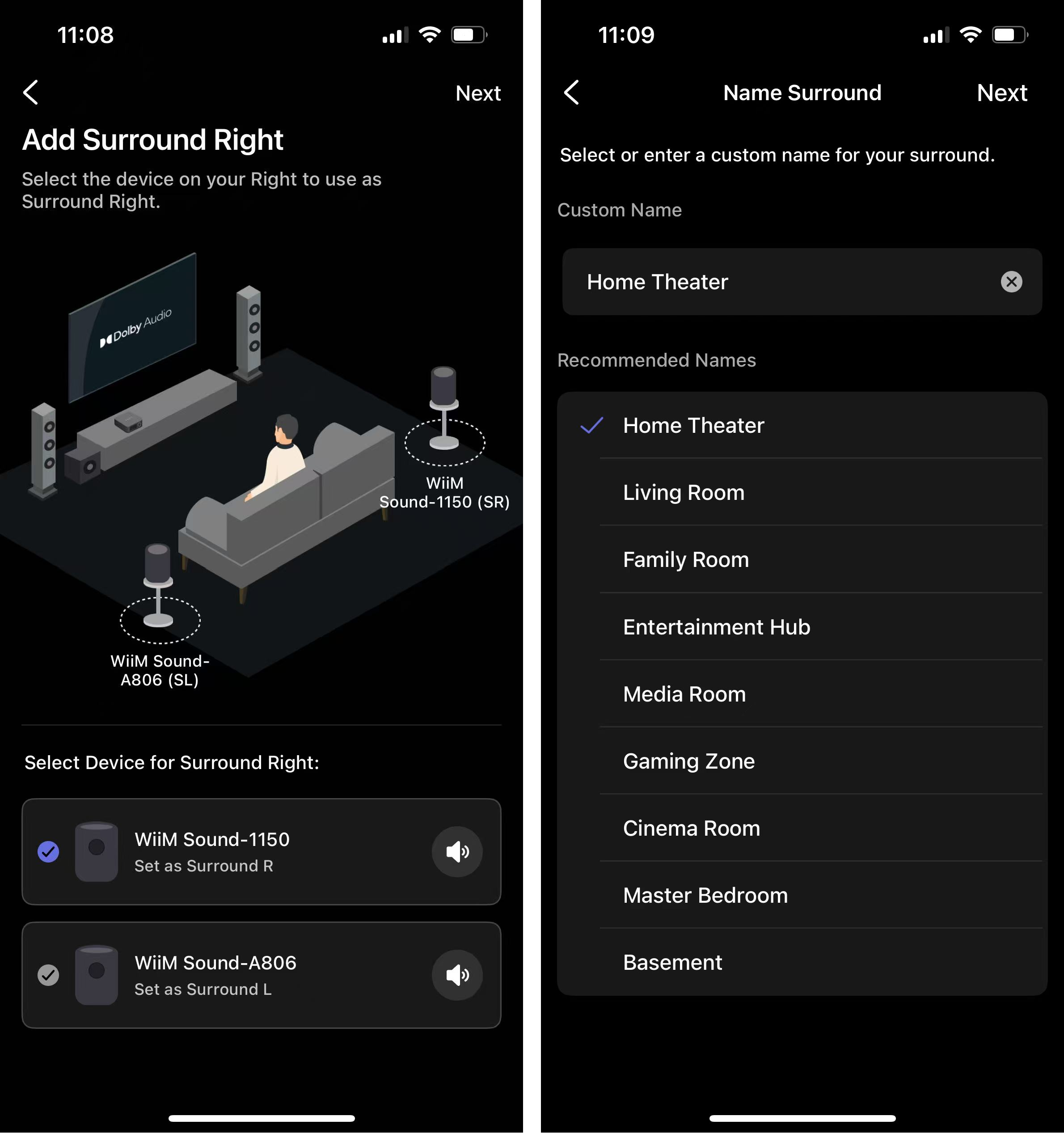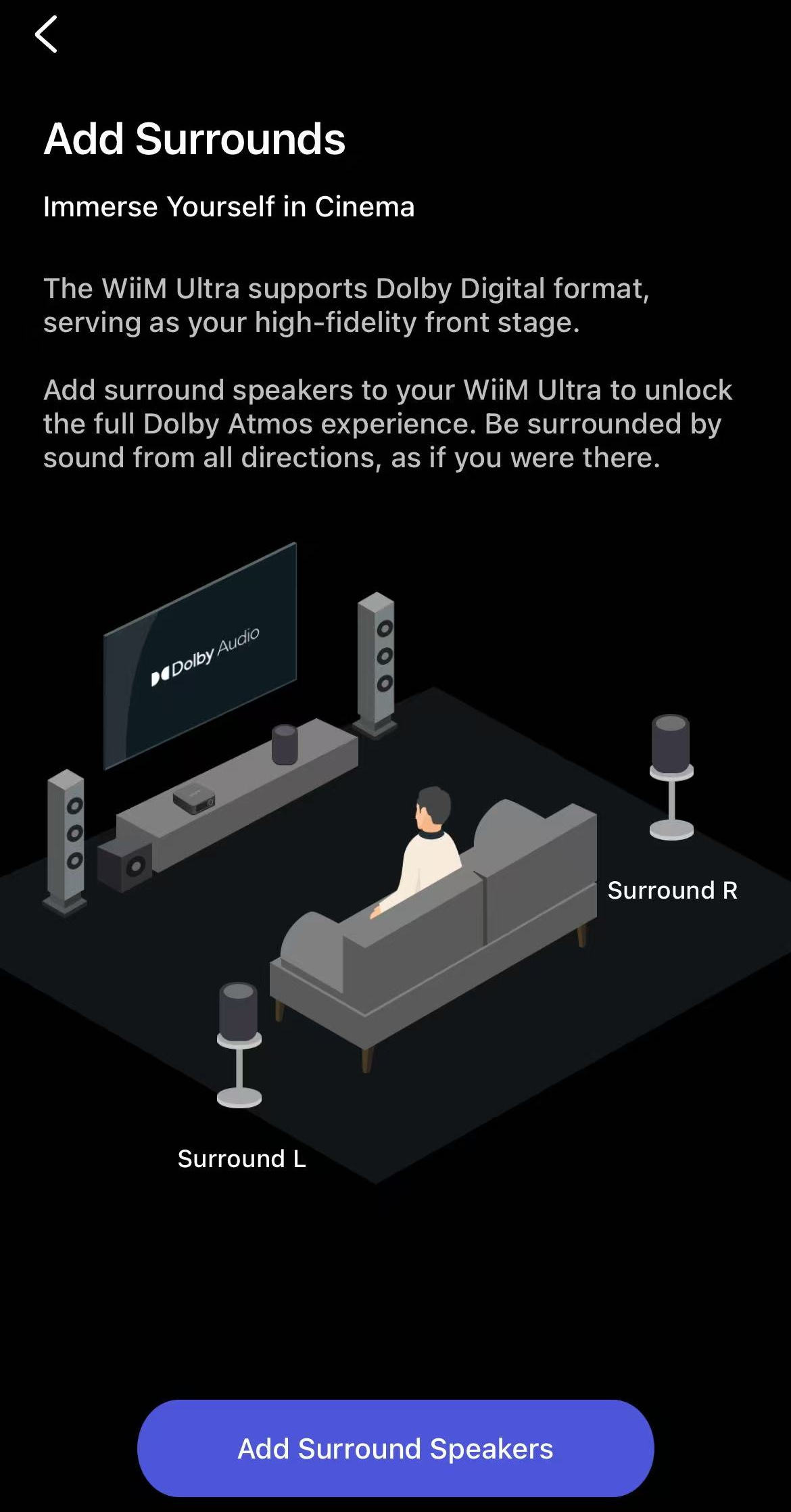 These hub devices now feature the “Add Surrounds” setting, which simplifies setup. With the visual interface, you can assign Surround Left (SL) and Surround Right (SR) speakers in just a few taps.