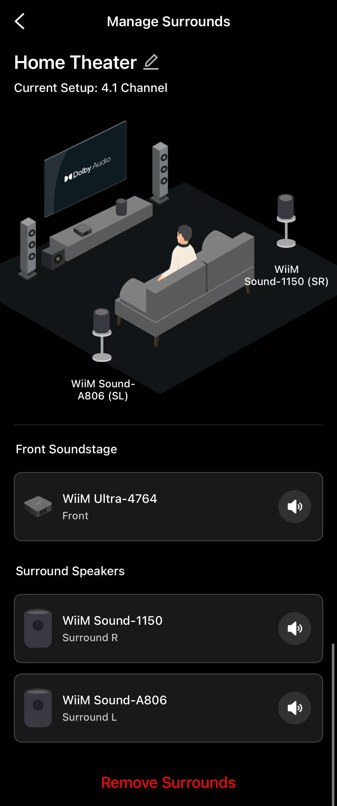 Once your surround sound system is created, you can manage it anytime—for example, rename it or remove it.