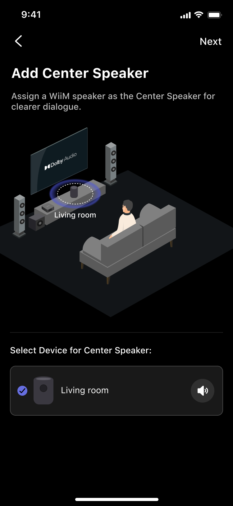 - Select your WiiM device as the Center speaker.